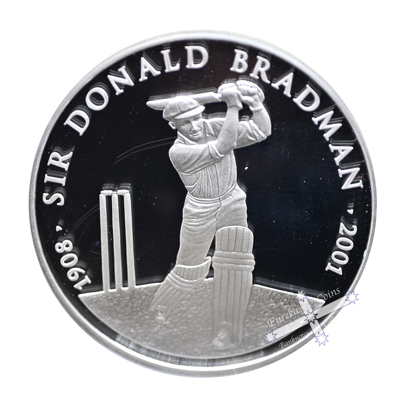 The 2001 $5 Sir Donald Bradman Silver Proof coin is a beautifully struck commemorative release celebrating the life and legacy of this legendary cricketer. Issued as a joint release by the Royal Australian Mint and The Perth Mint, the coin pays tribute to Bradman’s unparalleled career and enduring impact on Australian culture and national identity.